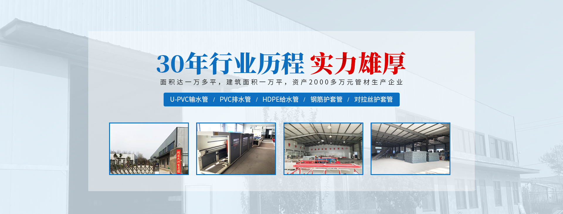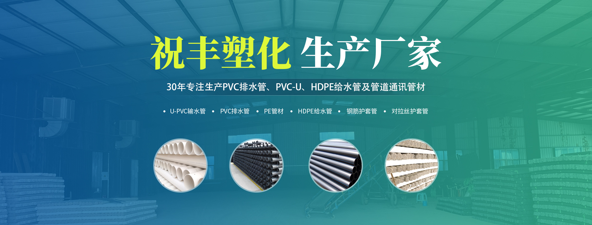 安陽(yáng)市祝豐塑化有限公司坐落在滑縣工業(yè)園區(qū),東臨大廣高速,西臨京珠高速,是鄭州、鶴壁、安陽(yáng)、濮陽(yáng)四個(gè)城市的輸紐,交通便利、環(huán)境優(yōu)美。       公司始建于八十年代,經(jīng)過二十余年的艱辛創(chuàng)業(yè),規(guī)模不斷壯大,由十多萬(wàn)元資產(chǎn)的小廠,發(fā)展到現(xiàn)占地面積達(dá)一萬(wàn)多平,建筑面積一萬(wàn)平,資產(chǎn)2000多萬(wàn)元管材生產(chǎn)企業(yè)。公司生產(chǎn)PVC-U、PVC排水管、HDPE給水管、鋼筋護(hù)套管管道通訊管材等產(chǎn)品,廣泛用于農(nóng)田節(jié)水、高山引水、人畜用水、建筑、電力通訊等多種用途,品種齊全。為了滿足用戶需求,可承攬各種給水、節(jié)水、灌溉工程。“祝豐塑化”憑借強(qiáng)勁的實(shí)力,優(yōu)良的管理水平。“以質(zhì)量求生存,以信譽(yù)求發(fā)展”的原則全力以赴和大家共同塑造美好未來。..